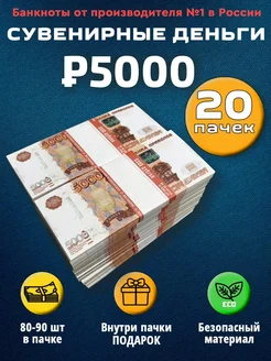 Билет Банка Приколов 5000 руб. сувенирная купюра, 20 пачек