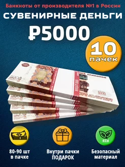 Билет Банка Приколов 5000 руб. сувенирная купюра, 10 пачек