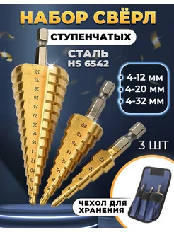 Набор ступенчатых сверл по металлу 4-12, 4-20, 4-32 в чехле