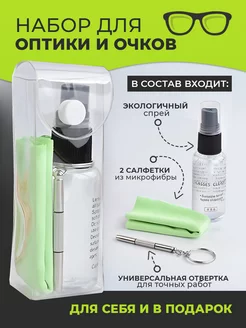 Салфетка для очков микрофибра и спрей для очков очищающий