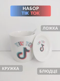 Набор посуды для дома фарфоровый с принтом Тик Ток Tik Tok