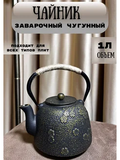 Чугунный чайник заварочный с ситечком 1 л