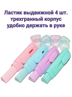 Ластик 4 шт. выдвижной 75х20х20 мм трёхгранный держатель