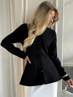 Кардиган приталенный с баской на пуговицах