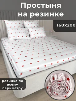 Простыня на резинке 160х200 сердечки