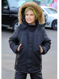 Куртка зимняя для мальчика удлиненная с капюшоном мембрана