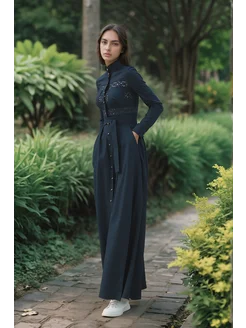 Платье осеннее повседневное теплое миди