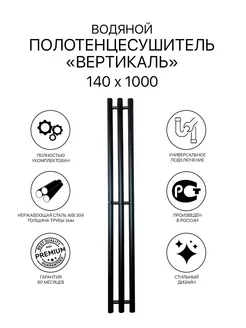 Полотенцесушитель водяной Вертикаль 140*1000 черный матовый