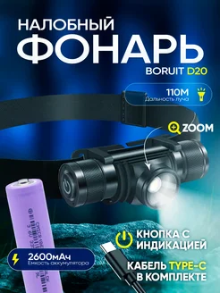 Светодиодный налобный фонарь D20 + 18650 (2600ma)