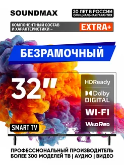 Телевизор 32", безрамочный, SMART TV
