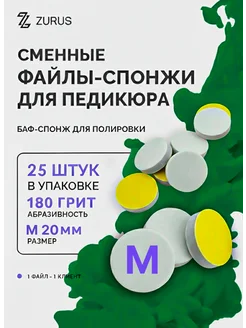 Сменные файлы-спонжи для педикюра M(20мм), №180, 25 штук