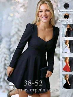 Платье с рукавом плотное приталенное солнце мини стрейч