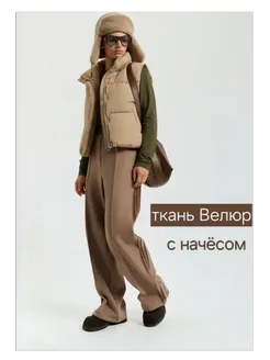 Коричневые брюки замшевые с лампасами
