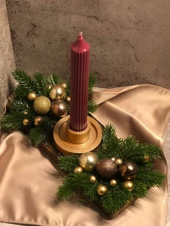 Новогодний подсвечник со свечей и веткой ели