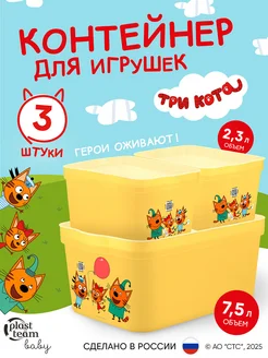 Контейнер для хранения игрушек пластиковый с крышкой, 3 шт