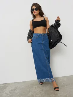 Юбка джинсовая макси с бахромой