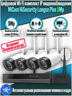 Комплект система видеонаблюдения wifi 4 камеры 5Mp со звуком