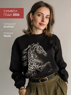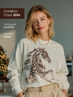 Кофта на новый год с лошадью без начёса нарядная хлопковая