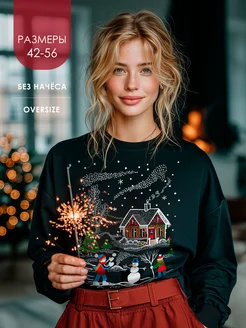 Свитшот c праздничным принтом хлопок из Турции оверсайз