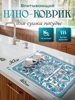 Нано-коврик для сушки посуды впитывающий 30*40см