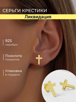 Серьги гвоздики кресты серебро 925 пробы пусеты с позолотой