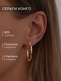Серьги кольца серебро конго круглые позолоченные