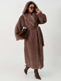 Длинная шуба искусственная с капюшоном из экомеха 2025 2026