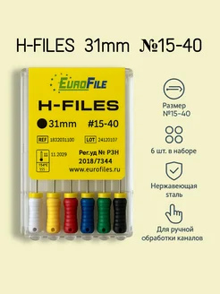 H-файлы стоматологические H-Files 31мм в наборе 15-40 6шт