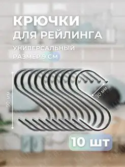 Крючки для рейлинга 10 штук хромированные нержавейка