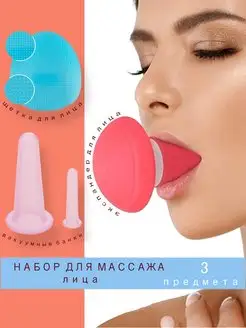 Набор для массажа лица, вакуумные банки, экспандер, щеточка