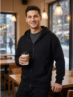 Толстовка на молнии с капюшоном оверсайз