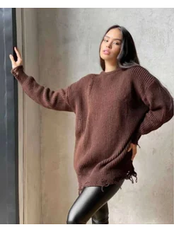 Платье туника вязаный тёплый рваный длинный свитер оверсайз