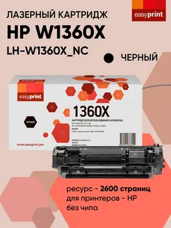 HP 136X Картридж LH-W1360X_NC, 2600 стр, черный, без чипа