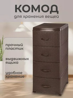 Комод пластиковый с ящиками, 38х48х96 см, коричневый