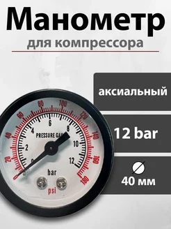 Манометр для компрессора аксиальный 1 8 D-40мм, 12bar