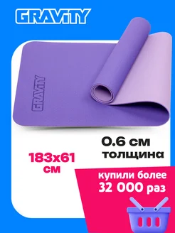 Коврик для йоги и фитнеса 6 мм сиреневый (нескользящий)