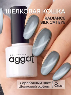 Гель лак для ногтей шелковый кошачий глаз серебряный 8мл