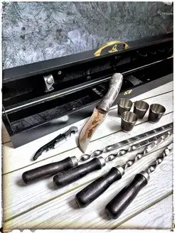 Набор шампуров с деревянной ручкой подарочный в кейсе Кизляр