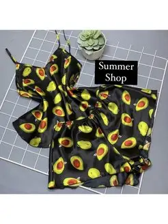 Пижама шелковая с авокадо топ с шортами