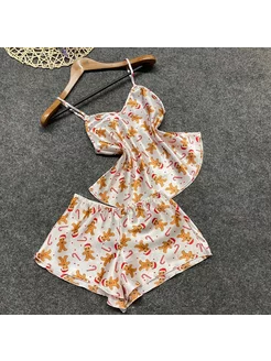 Пижама шелковая с пряниками топ с шортами