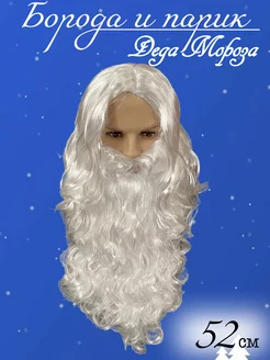 Накладная борода Деда Мороза с париком и усами, для гнома