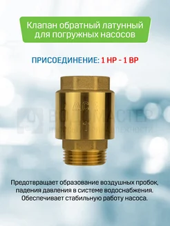 Обратный клапан латунный 1'' для погружных насосов