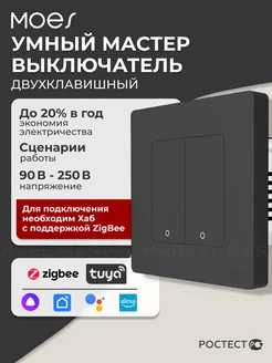 Выключатель умный двухклавишный Zigbee, встраиваемый, серый