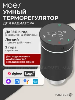 Умная термоголовка для радиатора, батареи отопления, черный