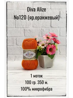 Пряжа для вязания Diva 120 ярко-оранжевый 1 моток