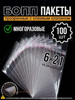Бопп пакет с клеевым клапаном, 6х21 см 60х210 мм