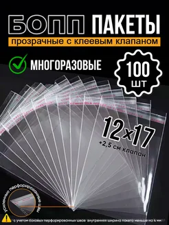Бопп пакет с клеевым клапаном, 10х12 см 100х120 мм