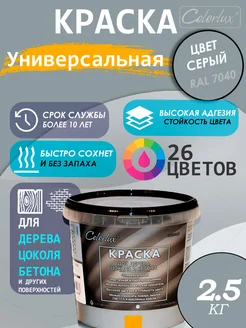 Краска универсальная для дерева, бетона Серый, 2,5кг