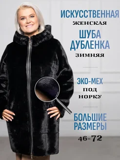 Дубленка шуба зимняя двухсторонняя с капюшоном длинная