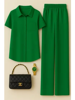Летний брючный костюм с рубашкой